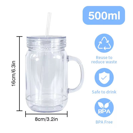 20oz CAPACITY DOUBLE WALL ACRYLIC MASON JAR PRE-DRILLED SNOW GLOBE TUMBLER