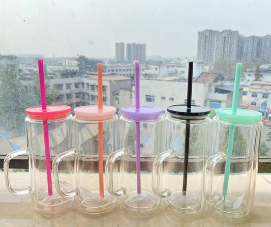 16oz GLASS SUBLIMATION PRE-DRILLED SNOW GLOBE WITH HANDLE AND COLORED LID
