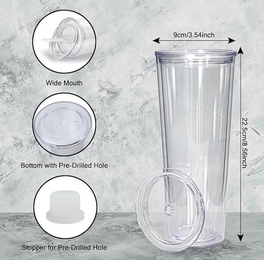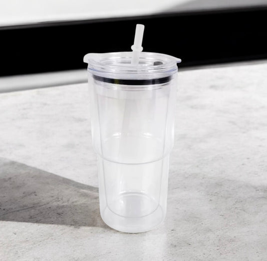 24oz DOUBLE WALLED PRE-DRILLED SNOW GLOBE ACRYLIC PLASTIC TUMBLER