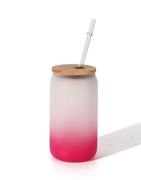 16oz OMBRE COLORED SUBLIMATION GLASS BEER CAN TUMBLER WTH BAMBOO LID