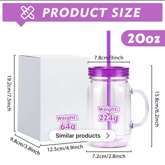 20oz DOUBLE WALL ACRYLIC MASON JAR PRE-DRILLED SNOW GLOBE TUMBLER WITH COLORED LIDS (PRE DRILLED)